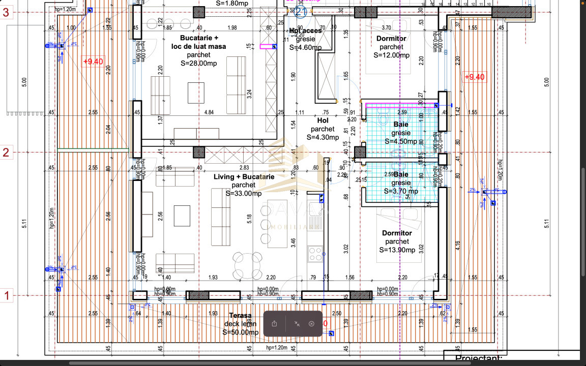 - Dispune: de un living spațios conectat cu bucătăria, 2 dormitoare, 2 bai, dressing, hol, terasa, pe o suprafata utila totala 127.50 de mp.