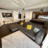 Livingul este gândit ca un spațiu generos și versatil, careîmbină perfect confortul zilnic cu eleganța momentelor desocializare. Parchetul de calitate și luminile ambientale creează o atmosferă caldă și primitoare, iar zona de bar și masa de dining, oferă flexibilitate în organizarea spațiului.