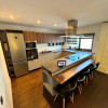 Bucătăria deschisă dispune de o suprafață amplă pentru gătit, ideală atât pentru mesele de zi cu zi, cât și pentru momente speciale alături de familie și prieteni. Atât din living, cât și de pe balcon, priveliștea asupra orașului adaugă un farmec aparte și completează perfect experiența acestui spațiu.