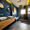 Baia principală, de 6,65 mp, este modernă și foarte bine dotată, cu echipamente decalitate de la Grohe, Kludi și Geberit, încălzire în pardoseală, fereastră pentru luminănaturală și ventilație, două chiuvete, două oglinzi, mult spațiu de depozitare și un walk-in shower spațios care include și un loc de relaxare.