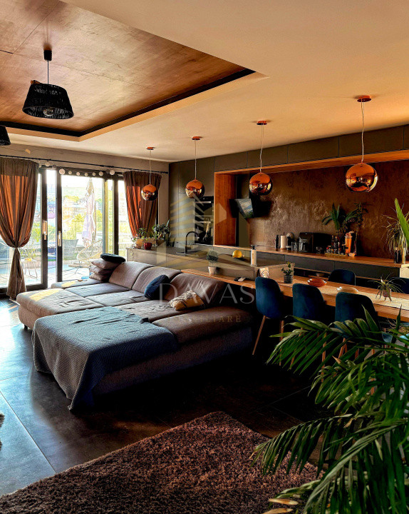 Suprafață și compartimentare: Apartamentul este semi/decomandat, cu o compartimentare modernă și funcțională, ideală pentru un cuplu sau o familie mică. Dispune: de un living spațios conectat cu bucătăria, doua dormitoare separate, doua bai, dressing, pe o suprafata utila de 120mp + Terasa de 45mp.