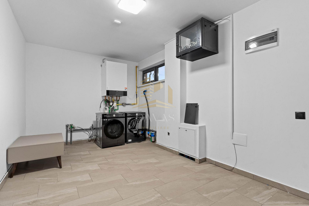 Suprafață și compartimentare:Casa este semidecomandata, cu o compartimentare modernă și funcțională. Dispune: de un living spațios cu trecere , bucătăria, doua dormitoare separate, doua bai și balcon, pe o suprafata utila de 135mp. La Subsol se afla garajul, spatii tehnic si un spatiu de depozitare.