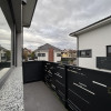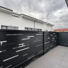- Curte amenajată, gard din beton și lemn, atmosferă intimă și curată
