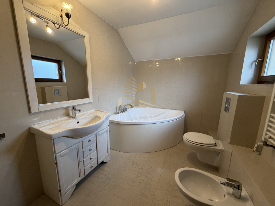 - etaj: 3 dormitoare din care unul matrimonial cu baie si dressing