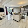 La parter: un living spațios conectat cu bucătăria, baie, spatiu tehnic, dressing, terasa de 40mp,