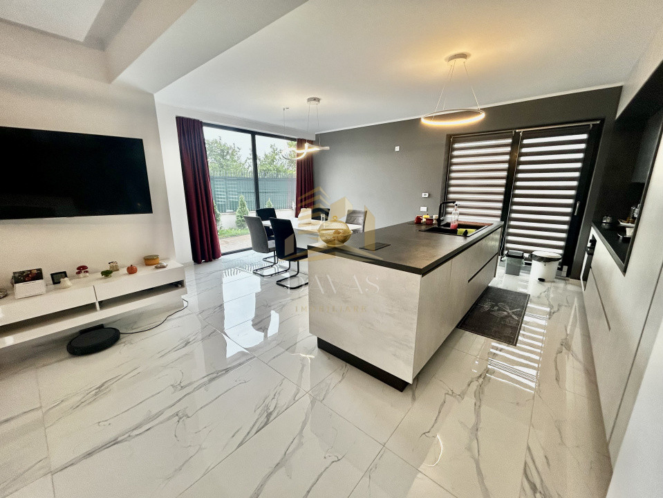 Suprafata utila a casei este de 190mp la care sa adauga garajul dublu de 50mp cu loc suficient pentru doua masini.