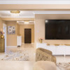 Atmosfera interioară îmbină eleganța clasică cu accente moderne, tonuri calde, marmură, detalii aurii și lumini ambientale, creând un sentiment de hotel de 5 stele… acasă.
