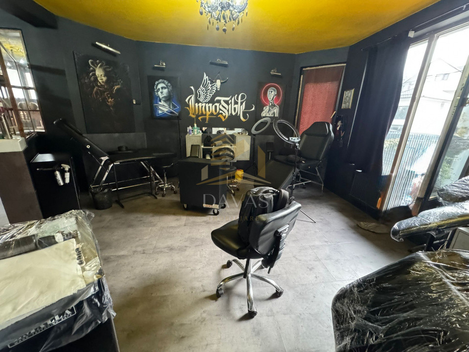 Spațiul actual este amenajat ca studio tattoo autorizat, însă se poate reconfigura complet în funcție de nevoile chiriașului — de la salon beauty, birou privat,sau spațiu de lucru colaborativ, precum orice alta activitate comercială.